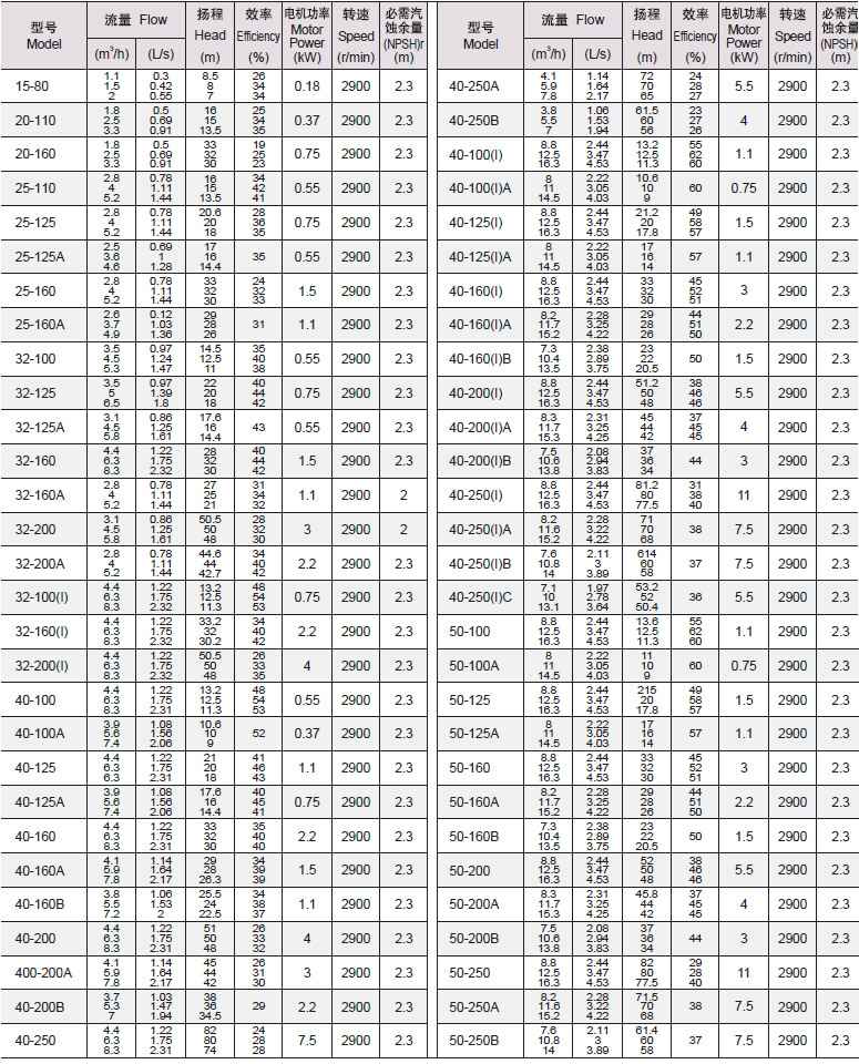 3、所输送介质中固体颗粒体积含量不超过单位体积的0.1%,粒度<0.2mm. 注:如使用介质为带有细小颗粒,请在订货时说明,以便采用耐磨式机械密封